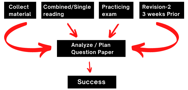 - At the end of each topic try to memorize the points to be written in the exam, those points should be revised frequently (during tea time, while discussing with friends). Recall helps a lot.